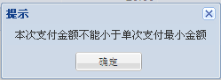 如果输入的金额超过了 “未付金额” 下的金额,则系统弹出提示如图2-3 所示。